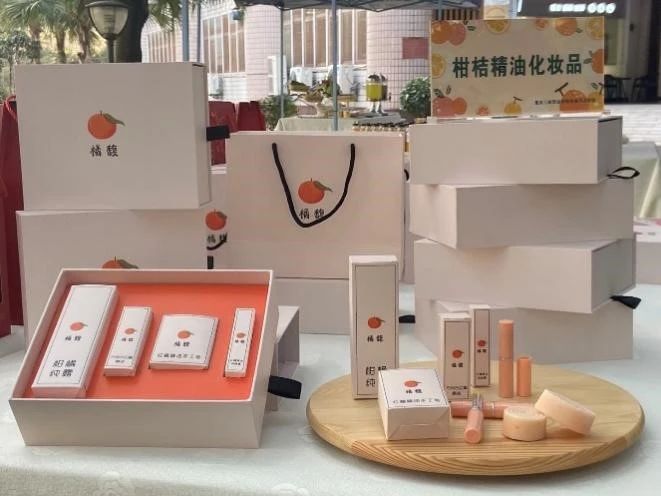 由于紅桔精油的護膚特性,其常被用于制作化妝品的原料。重慶三峽職業(yè)學院組建紅桔深加工團隊,已成功開發(fā)出精油、潤唇膏、香皂等古紅桔精油化妝品。