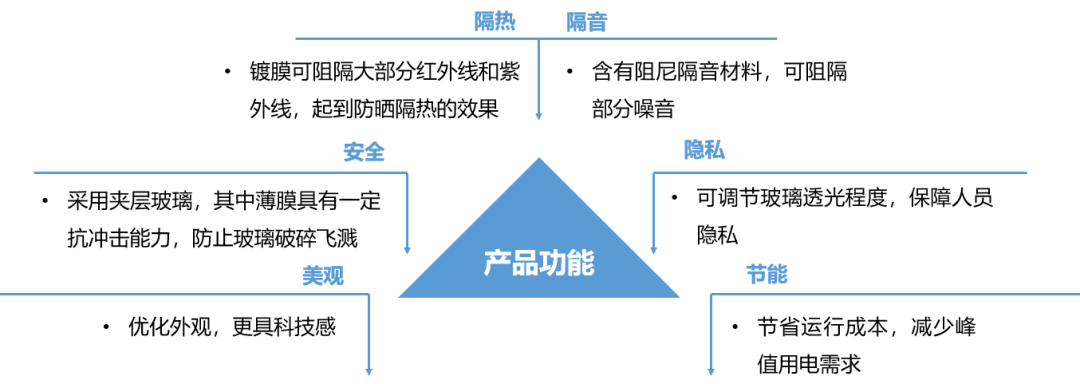 汽車領域相對新興,尤其在全景天幕車型領域開始快速滲透,未來幾年汽車調光玻璃市場將快速增長。