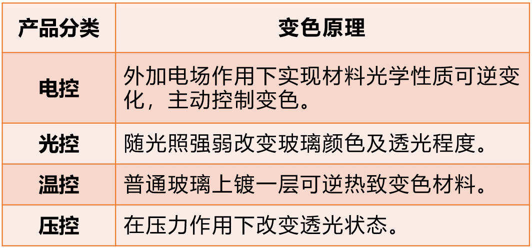 調光玻璃根據實現方式的不同,可分為電控、溫控、光控、壓控等各種類型,由于各種條件限制,市面上實現量產的調光玻璃幾乎都是電控調光玻璃。
