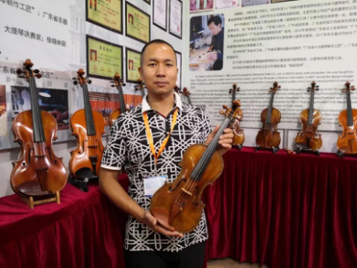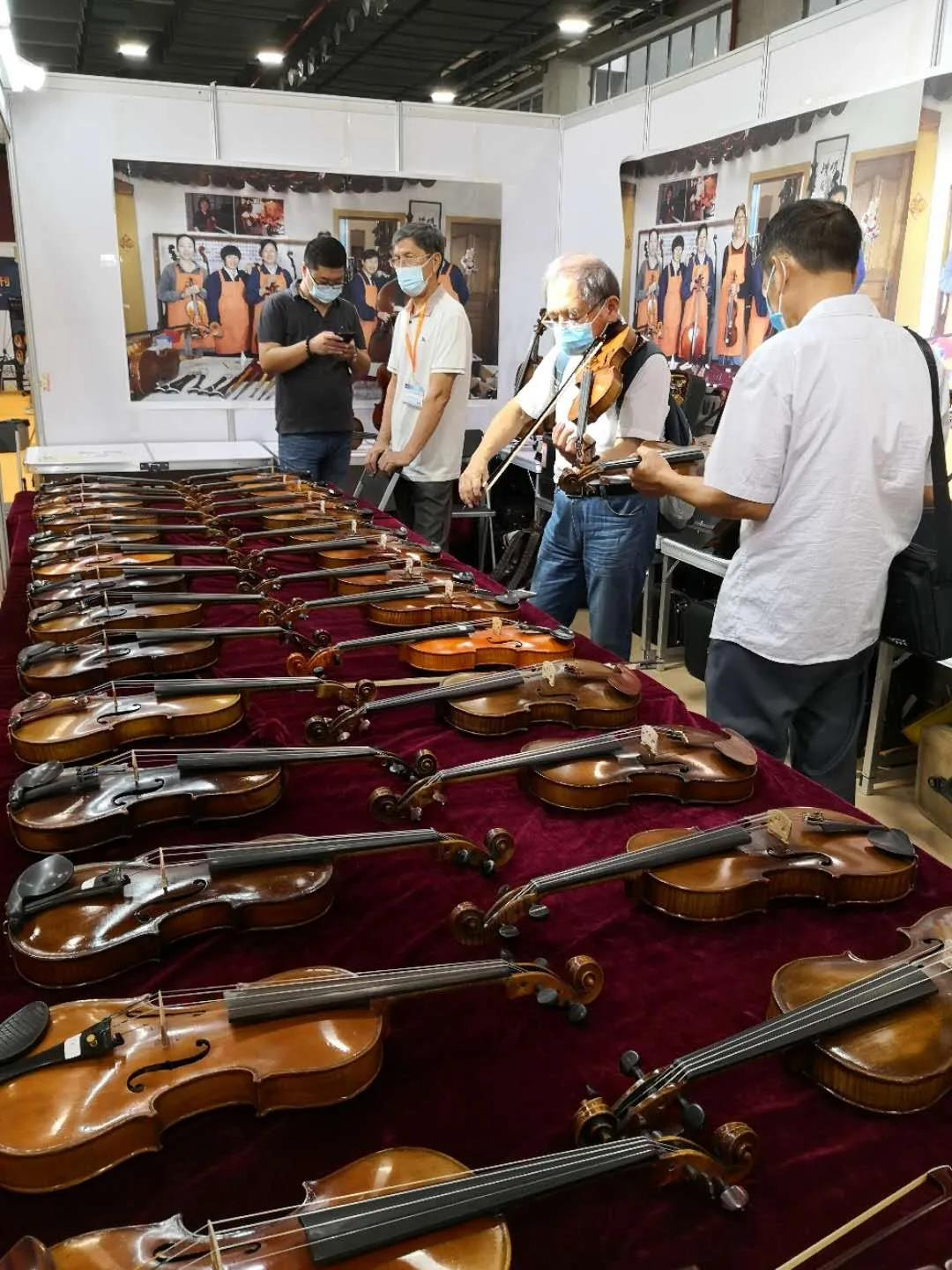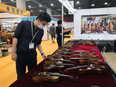 廣州華星樂器行帶來了一些中高端的提琴參展。總經理吳祖亮表示:原來我們的提琴多以出口為主,因為疫情的關系,現在只能走內銷這條路。為此,我們今后要多與專家溝通,在提琴的舒適度方面不斷改進,在提琴的音質、音色方面不斷提升,以滿足國內演奏家的需求。吳祖亮表示,參加廣州樂器展,旨在國外銷售渠道不暢的當下,意欲拓寬國內銷售渠道。他笑著說:"原以為疫情期間展會效果不會太好,沒想到展會人氣很旺,比我預想的要好很多。"這兩天一些顧客到他的展位選購了一些小提琴和大提琴,令他很是欣慰。