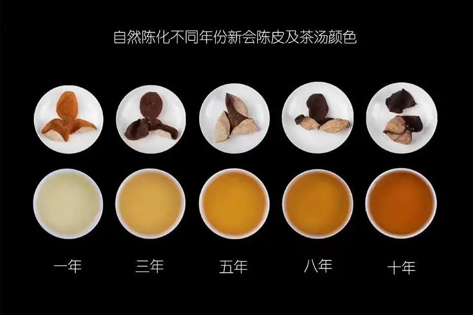 3.通過聞、品味道判斷——陳皮的香氣滋味由年份低到高的變化趨勢是:辛、澀、痹、雜刺激——甘、香、醇、陳。不符合這個(gè)規(guī)律的,往往就是拔高了年份;比如,一份標(biāo)示20年的陳皮,卻表現(xiàn)出柑味,或辛、澀、痹、雜、刺激的特點(diǎn),基本可以認(rèn)為是假年份。