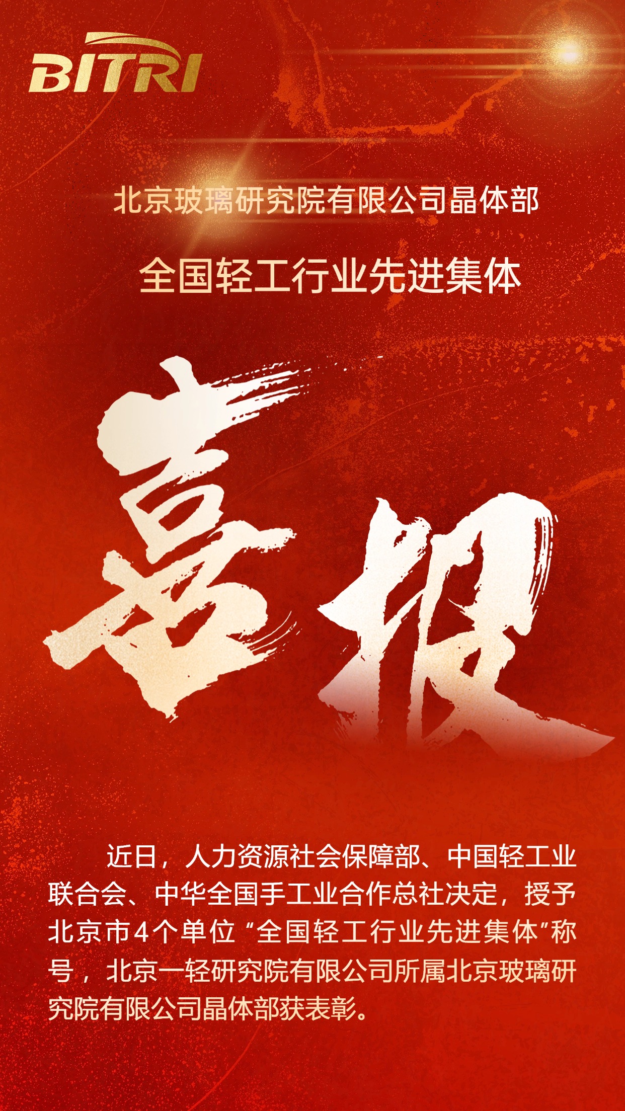 玻璃院晶體部榮獲全國輕工行業先進集體稱號